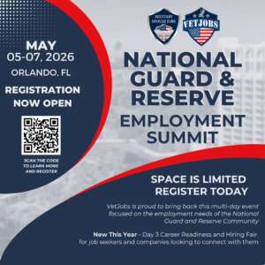 At VetJobs, we understand the needs of actively drilling members of the Guard and Reserves, to include spouses. We are the only major employment support organization for the military community that provides a full suite of no-cost employment support specifically tailored for and focused on the National Guard and Reserve components. Our mission is to enhance the readiness, retention, and resilience of the Guard and Reserve by ensuring that active and retired members, their spouses, and their dependents have access to meaningful career opportunities.